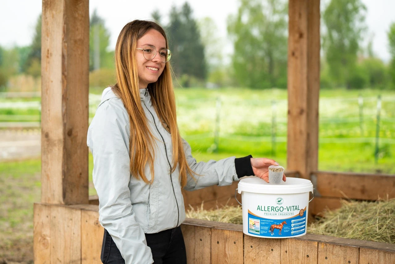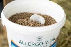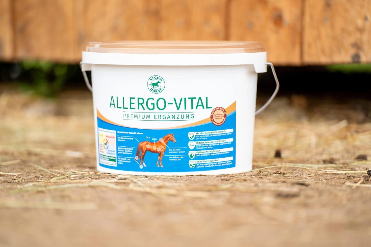 In den letzten Jahren nimmt die Allergiebereitschaft beim Pferd stetig zu. Häufig treten Unverträglichkeiten gegenüber einzelne Futtermittel auf, ebenso ist eine erhöhte Allergieempfindlichkeit der Atemwege und der Haut beim Pferd anzutreffen. Bei allergieempfindlichen Pferden ist es ein wichtigstes Ziel das Immunsystem und den Stoffwechsel im Gleichgewicht zu halten. Hierbei ist sowohl die Unterstützung einer intakten Darmflora als auch eine hochwertige Versorgung mit Vitaminen, Mineralstoffen, Spurenelementen und Aminosäuren unerlässlich. Bekannte Allergene wie Melasse, Luzerne, bestimmte Kräuter oder Weizenbestandteile sollten konsequent gemieden werden. Atcom ALLERGO-VITAL bietet eine komplette Rundum-Versorgung mit allen lebenswichtigen Mineralstoffen, Vitaminen, Spurenelementen und Aminosäuren und eignet sich speziell für allergieempfindliche Pferde. Angereicht ist die gezielte Premium-Vitalstoffversorgung mit speziellen Wirkstoffen zur Unterstützung der Verdauung, Stoffwechsel, Leber sowie mit Bentoniten und B-Vitaminen zur Vorbeuugung vor Giftstoffen. Die hochwertige Zusammensetzung und Nährstoffzusammenstellung eignet sich außerdem ideal bei magenempfindlichen Pferden.