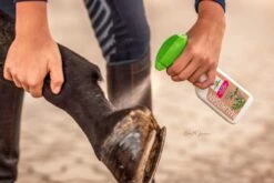 Schweif-, Fell- und Hufpflege: Etwas Öl auf der Bürste verteilen und den Schweif oder Mähne gut ausbürsten. Verkrustungen lösen sich. Das Haar wird seidig glänzend und locker. Hufe nach dem Säubern einpinseln.