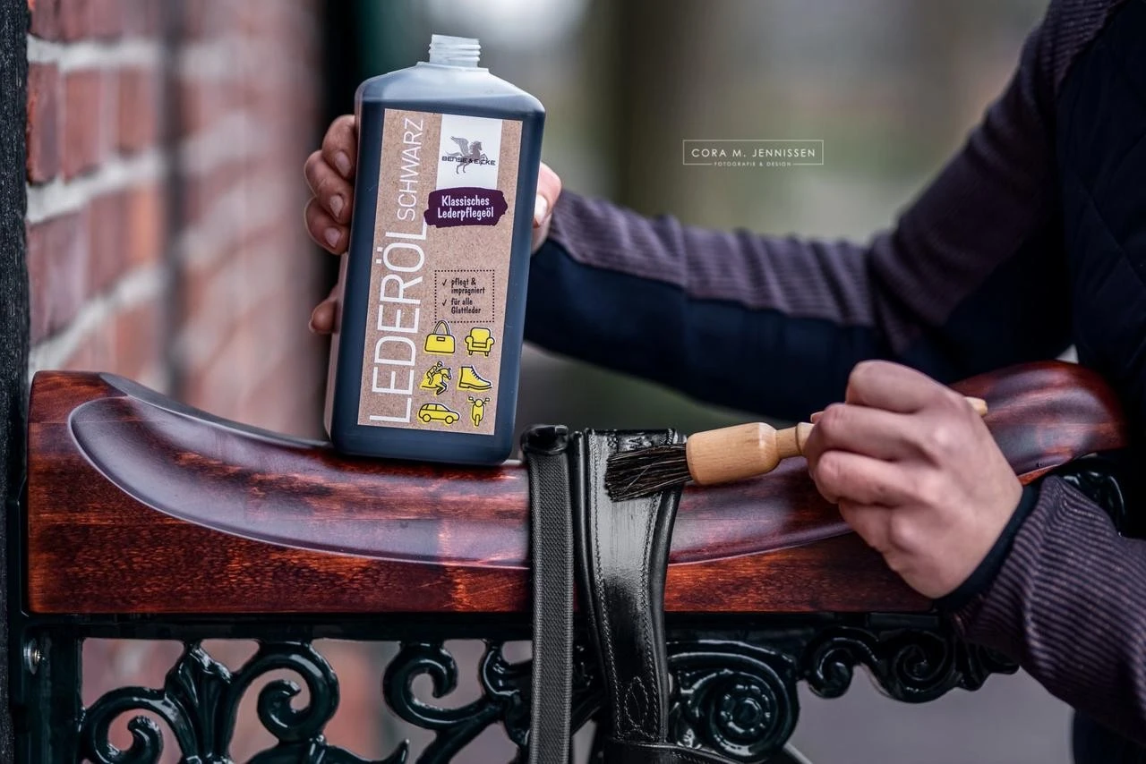 Bestes flüssiges Pflegemittel für Glattleder aller Art, wie Sattelzeug, Motorrad- und Arbeitsbekleidung. Dringt schnell in das Leder ein, macht es weich und geschmeidig – nährt, pflegt und imprägniert.
