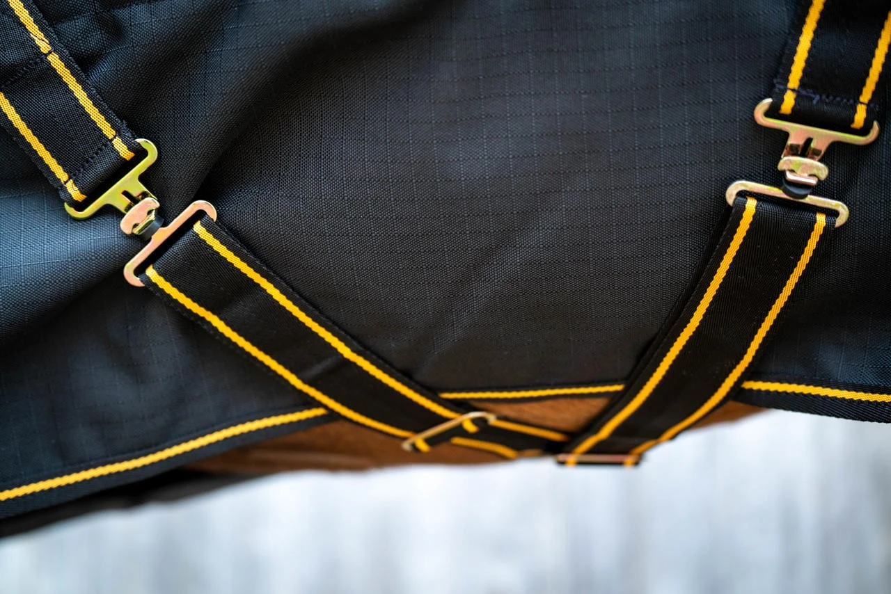 Die Bucas Irish-Turnout-Decke Extra bietet bei einem hervorragenden Preis-Leistungs-Verhältnis absolut ĂĽberzeugende Qualität und exklusiven Komfort, um den besonderen Anforderungen des eingedeckten Pferdes gerecht zu werden. Die Decke ist aus strapazierfähigem, wasserdichtem und atmungsaktivem Rip-Stop-AuĂźenmaterial gefertigt. Die T-Schnalle mit dem Magnetic-Snap-Lock-Verschluss garantiert einen optimalen Sitz der Decke und gewährt dem Pferd – in Kombination mit den ausgeprägten Schulterfalten – perfekten Tragekomfort und bestmögliche Bewegungsfreiheit. Das atmungsaktive Silk-Feel-Innenfutter unterstĂĽtzt das Fell des Pferdes und bewahrt es in einem gut gepflegten Zustand.