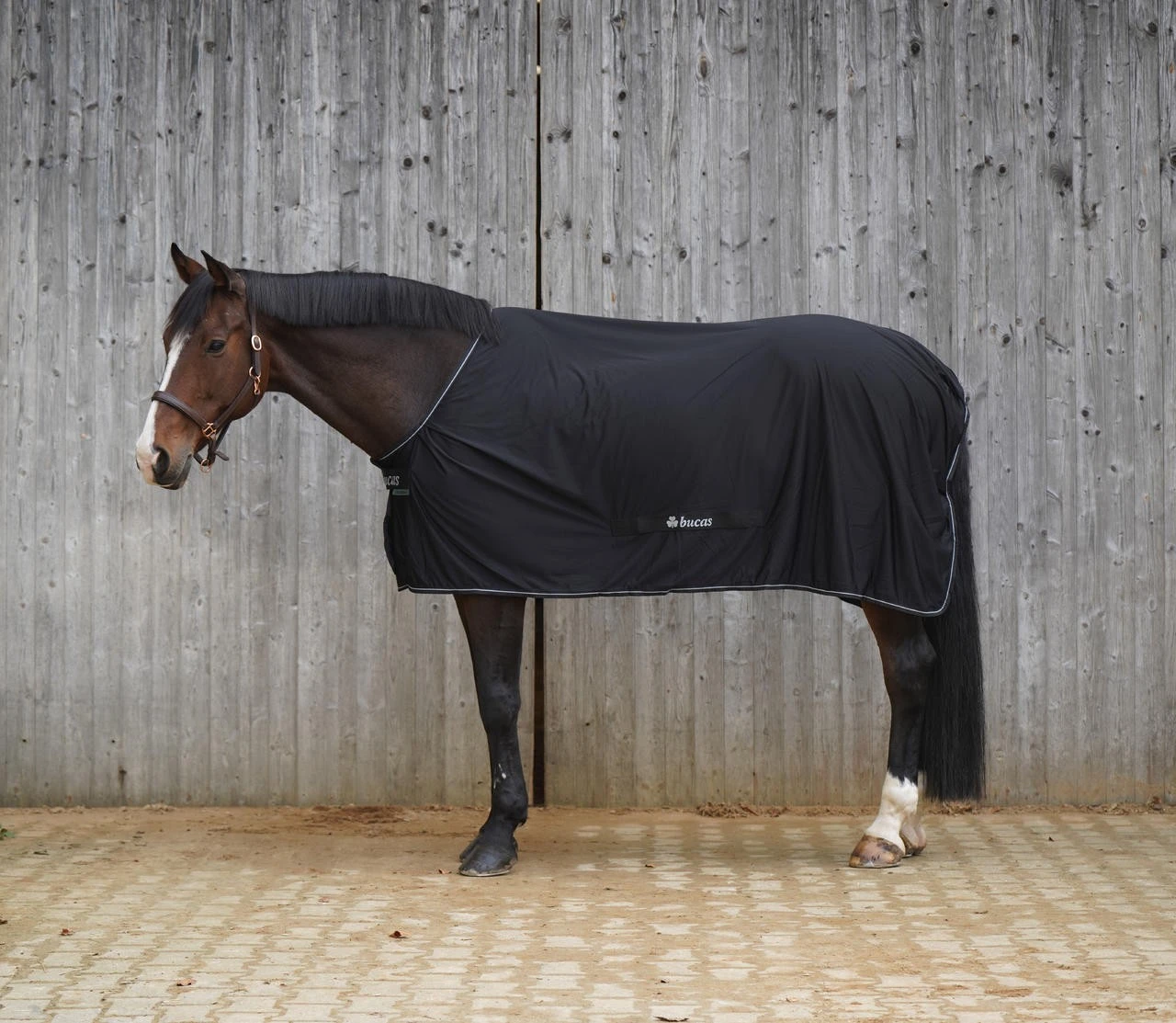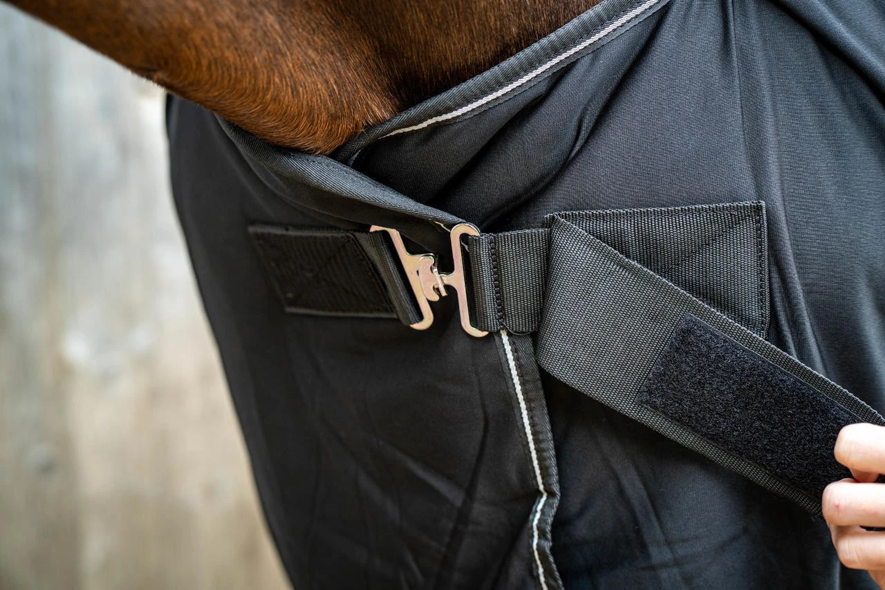 Das Innenfutter besteht aus dem Bucas Stay-dry Material, 1-lagig. Dieses funktionale Material leitet die Feuchtigkeit nach außen und hält das Pferd komfortabel und trocken.