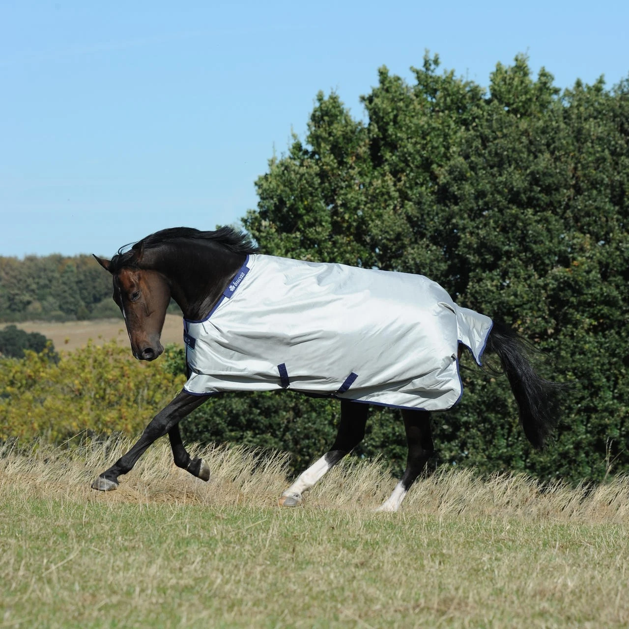 Die Decken verfĂĽgen ĂĽber das bewährte Stay-Dry-Innenfutter. Die Feuchtigkeit wird aufgrund dieses hochwertigen Materials schnell nach auĂźen transportiert, das Pferd trocknet rasch ab und auch das direkt auf dem Pferd liegende Innenfutter bleibt trocken. Die Bucas-Power-Turnout kann somit wie eine Abschwitzdecke bereits auf das nach dem Reiten oder Waschen des Pferdes noch nasse Pferd aufgelegt werden – ein zusätzliches, aufwändiges Umdecken des Pferdes ist nicht erforderlich.