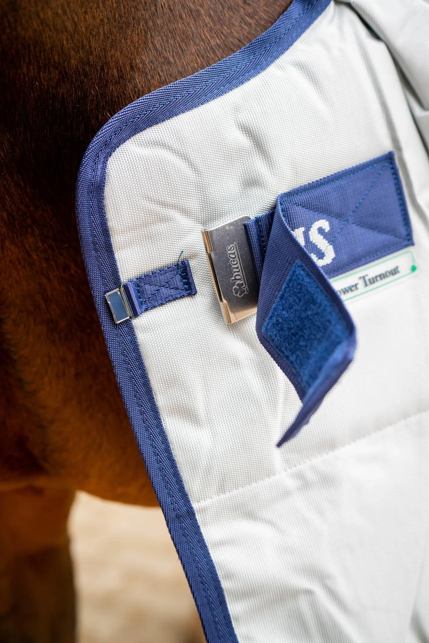 DarĂĽber hinaus ist die Bucas-Power-Turnout mit einer hochwertigen wärmereflektierenden Aluminium-AuĂźenbeschichtung ausgestattet und daher ĂĽber weite Temperaturspannen hinweg einsetzbar. Durch das extra reiĂźfeste, wasserdichte und atmungsaktive AuĂźenmaterial, dem Ballistic-Nylon, weist die Bucas-Power-Turnout zudem eine optimale Widerstandsfähigkeit auf. Die Schulterfalten und das Click’n’Go-System mit Magnetic-Snap-Lock-Verschluss gewähren eine optimale Passform und runden den Anspruch an eine perfekte Pferdedecke der Extra-Klasse ab.