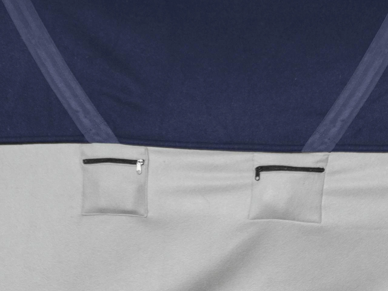 - elastisch angesetzte Kreuzgurte die bei Nichtnutzung sicher an der rechten Deckenseite in dafĂĽr vorgesehenen kleinen ReiĂźverschlusstaschen sicher verstaut werden können – praktisch z.B. beim Abreiten und Waschen der Decke
