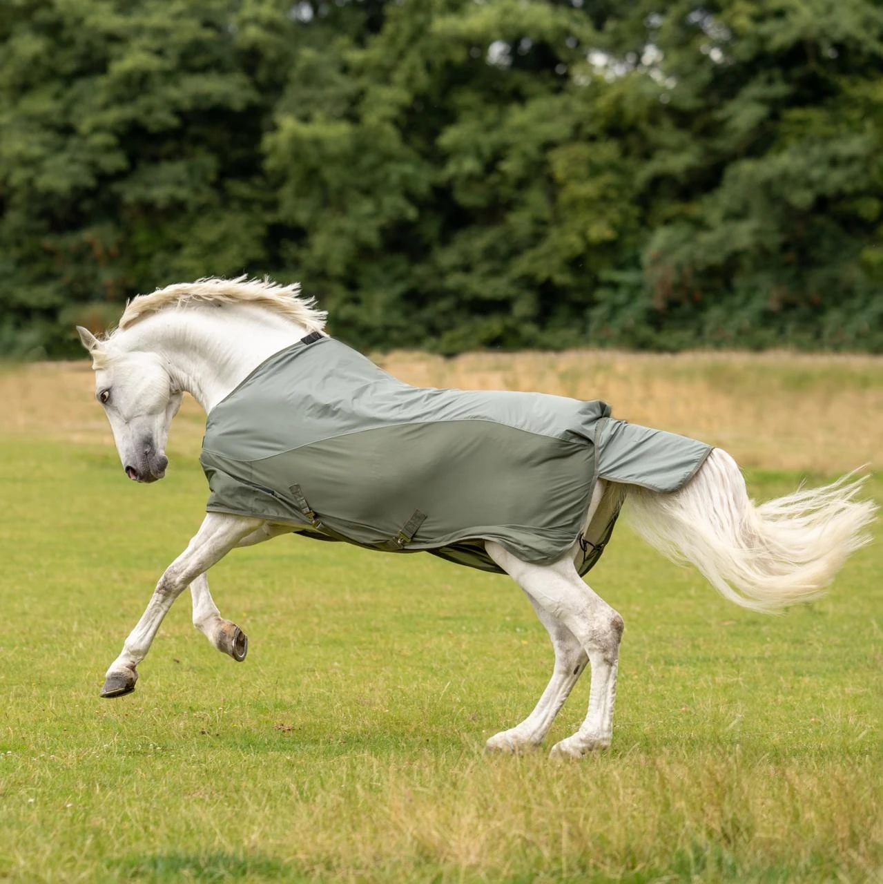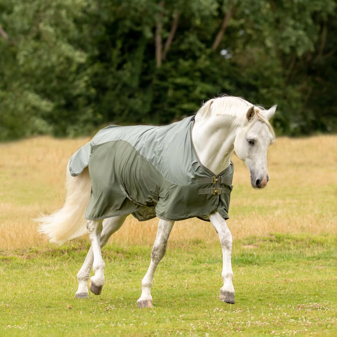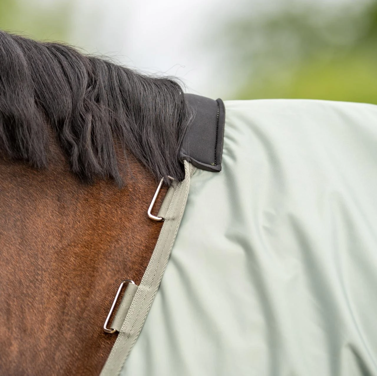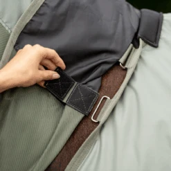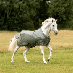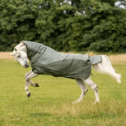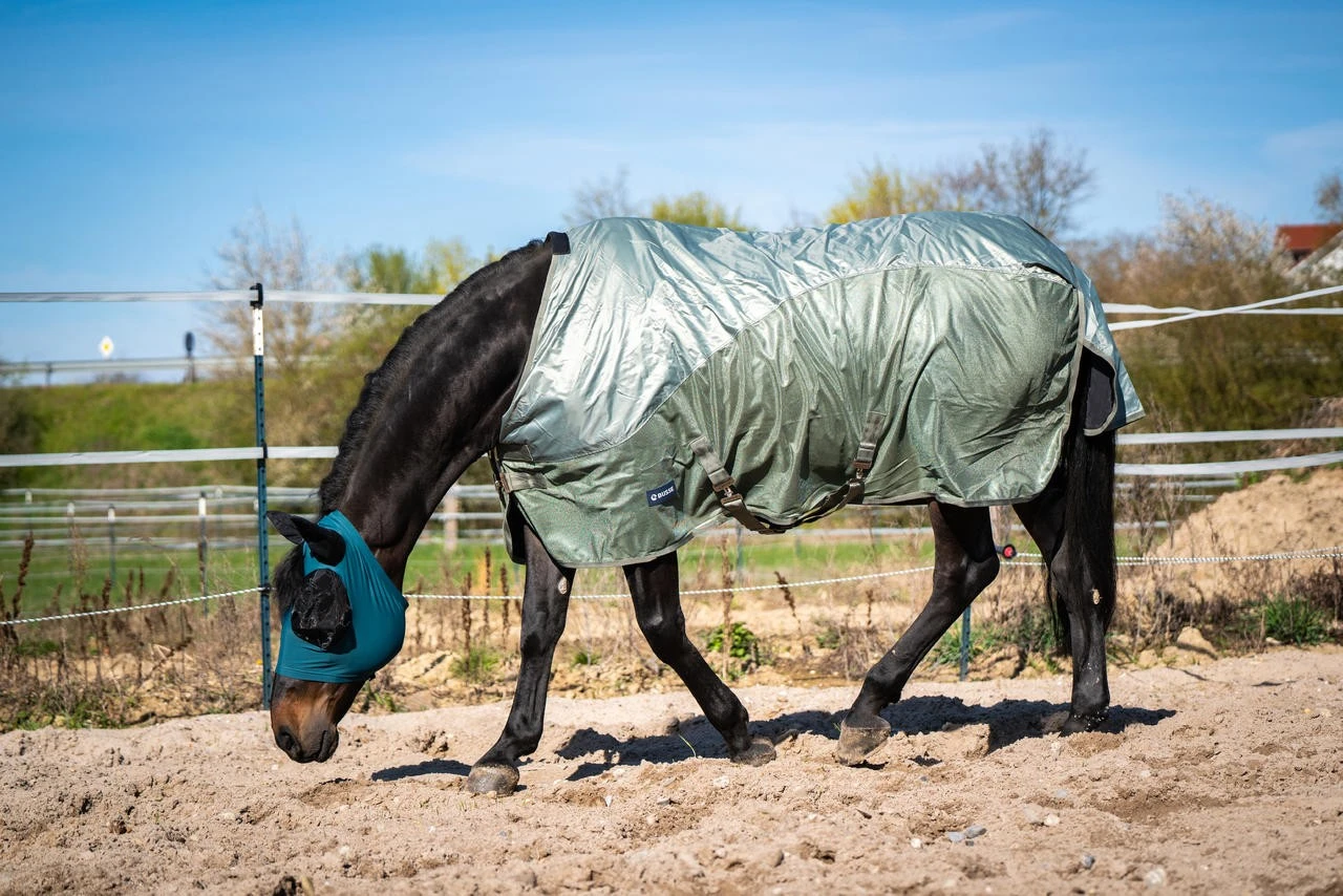 - Kombination aus strapazierfähiger Paddock-Regen- und Fliegendecke für wechselhaftes Wetter aus einem Mix von Sonne und Regen