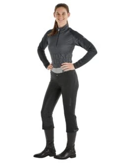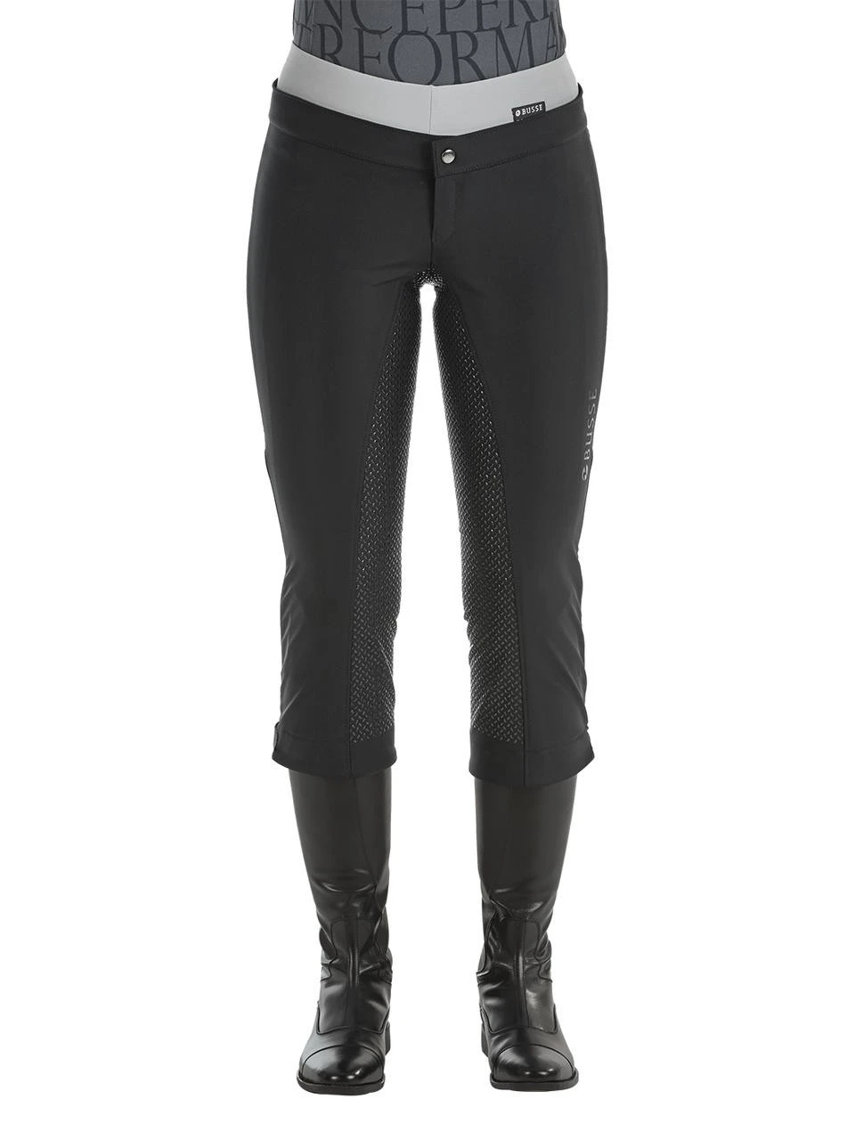 Die Überzieh-Reithose Tindra von BUSSE ist eine sportliche, elastische dreiviertellange Softshell-Reithose zum schnellen Drüberziehen über die Reithose bei winterlichen Bedingungen.