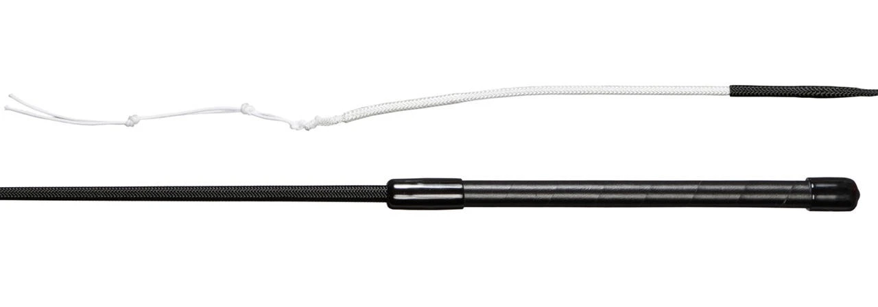 Fiberglasgerte, grobes Nylongeflecht, Ledergriff mit flexibler Spitze.