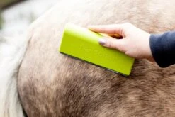 Fellschön – DIE Bürste für den Fellwechsel entfernt sanft sämtliche losen Haare, groben Schmutz, Hautschuppen und Schweißränder schnell, einfach und effektiv. In der Bürste bleiben keine Haare hängen und das ständige lästige Entfernen entfällt. Die Fellschön Bürste kann nicht nur an Pferden, sondern auch an Hunden und anderen Tieren angewandt werden.