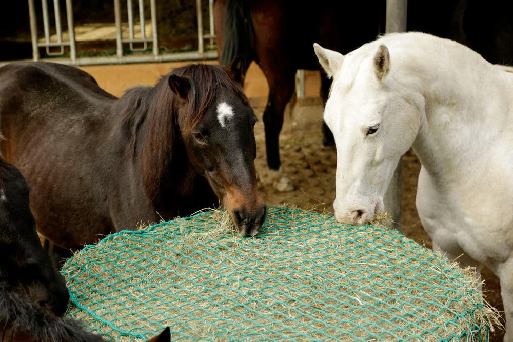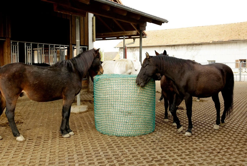 Heunetz für Heu- und Siloballen für die futtersparende Versorgung von Pferden mit Rauhfutter.