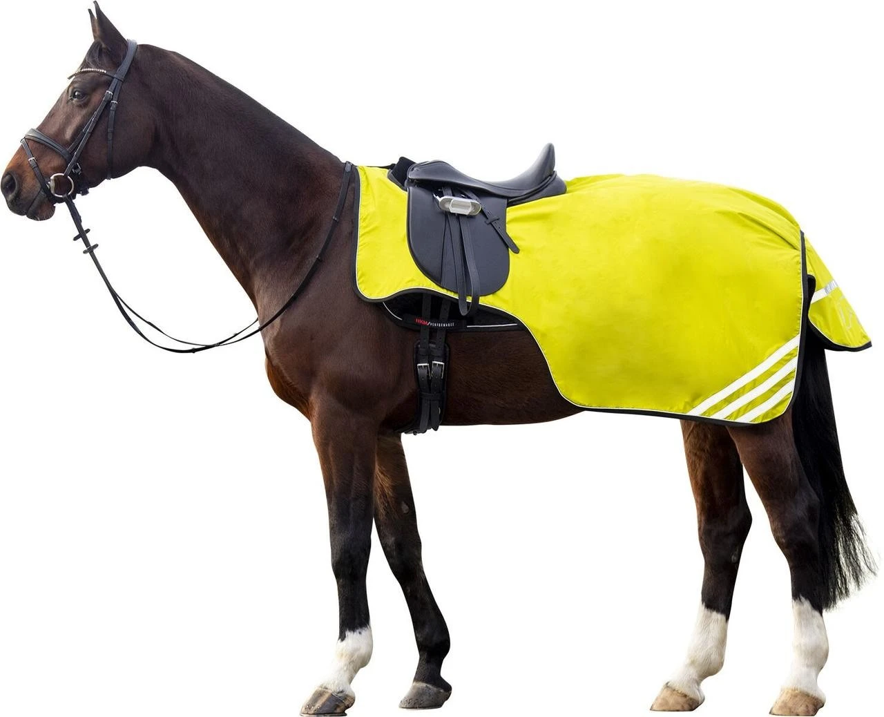 Die Nierendecke Reflective ist reißfest sowie wasserdicht, atmungsaktiv und winddicht. Die Innenseite der Nierendecke ist mit Polar Fleece gefüttert. Die Decke besitzt einen Klettverschluss am Sattelausschnitt. Außerdem ist die Nierendecke mit Schweifriemen und Schweiflatz ausgestattet. Das reflektierende Material erhöht die Sichtbarkeit von Pferd und Reiter beim Ausreiten in der Dämmerung oder Dunkelheit.