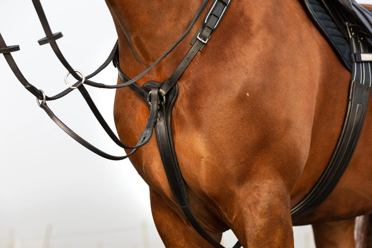- Maximale Verstellmöglichkeiten an der Halsseite, Bauchgurt und abnehmbare Martingalgabel.