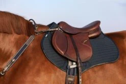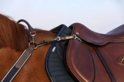 - Abnehmbarer Festhalteriemen am Widerrist fĂŒr den Reiter beim Training von jungen Pferden, ĂŒberschwenglichen Springern oder fĂŒr AnfĂ€nger zur Hilfe beim Finden der Balance.