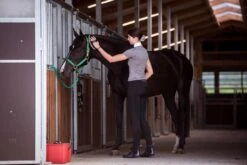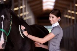 Die Hochglanzbürste von LEISTNER (Hersteller-Nr. 1 B 90) mit ihren weichen schwarzen synthetischen Borsten und dem weißen Rand vollenden die perfekte Pflege Ihres Pferdes für einen seidigen Glanz.