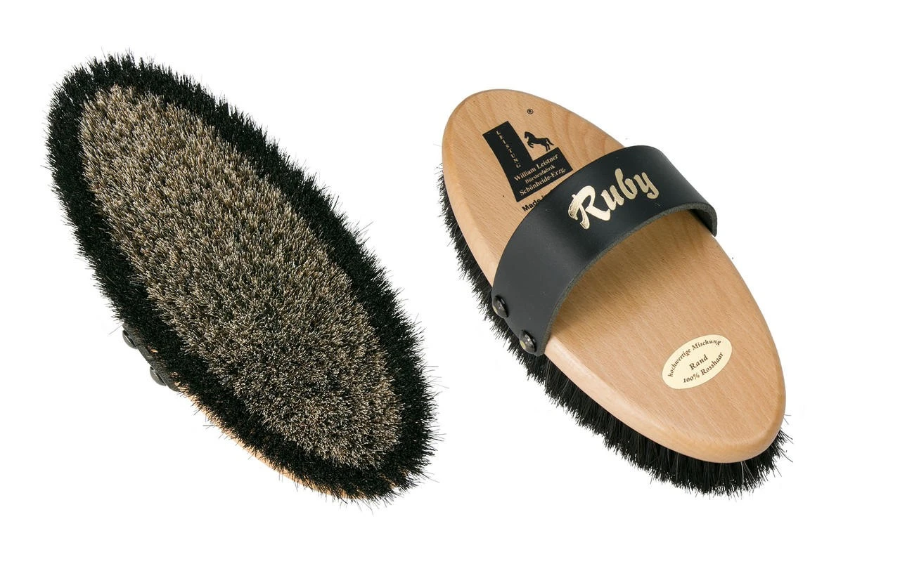 Die Kardätsche Ruby von LEISTNER (Hersteller-Nr. 1 C 28) vereint ein hervorragendes Putzergebnis mit einem wohltuenden Massageerlebnis für das Pferd. Die grau melierte hochwertige Rosshaarmischung in der Kardätsche Ruby ist eine preiswertere Alternative und bringt in Verbindung mit einem doppelten Rand aus Rosshaar hochwertigster Qualität aus dem Pferdeschweif ein sehr gutes Putzergebnis und sorgt für einen schönen Glanz im Fell.