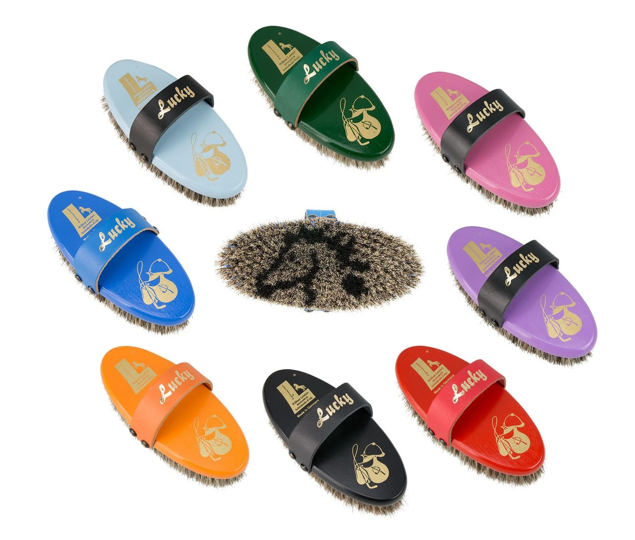 Die Kardätsche Lucky von LEISTNER (Hersteller-Nr. 2 D 53) gefällt Kindern und Jugendlichen mit ihrem besonderen Design. Mit der dichten hochwertigen Rosshaarmischung und einem ansprechenden Pferdemotiv aus Schweineborsten holt man den Schmutz spielend aus der Tiefe und bringt einen schönen Glanz ins Fell.