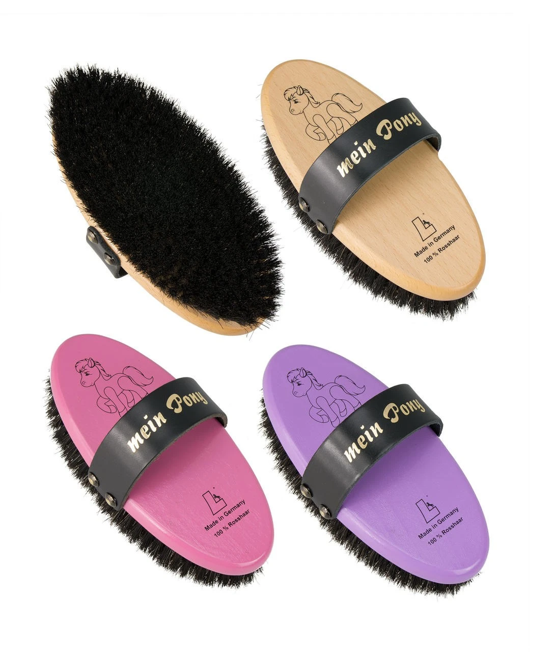 Die Kardätsche „Mein Pony“ hat die perfekte Größe für eine mittlere Mädchen- bis kleine Damenhand. Die Fertigung aus farbig lackiertem PEFC-zertifizierten Buchenholz verspricht zudem eine antibakterielle Wirkung und ein angenehmes Gefühl in der Hand, auch bei sehr kühlen Temperaturen. Der hochwertige Ledergurt wird in Handarbeit genagelt und kann in der Länge gekürzt werden.