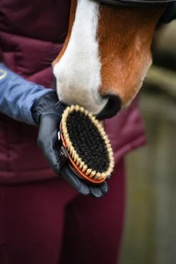 Mit der Pferdekopfkardätsche von LEISTNER (Hersteller-Nr. 1 F 54 / 1 F 54 K / 1 F 54 KS) gönnt man seinem Pferd ein wohltuendes Massageerlebnis, das es im Kopfbereich besonders genießt. Die Rosshaare in bester Qualität aus dem Pferdeschweif und ein Rand aus hellen Schweineborsten holen den Schmutz aus der Tiefe, nehmen den Staub sehr gut auf und sorgen für einen wunderbaren Glanz im Fell. Durch die Verwendung von Naturmaterialien wird das Fell zudem perfekt gepflegt, da diese eine rückfettende Wirkung garantieren. Naturmaterialien erzeugen keine elektrostatische Aufladung.