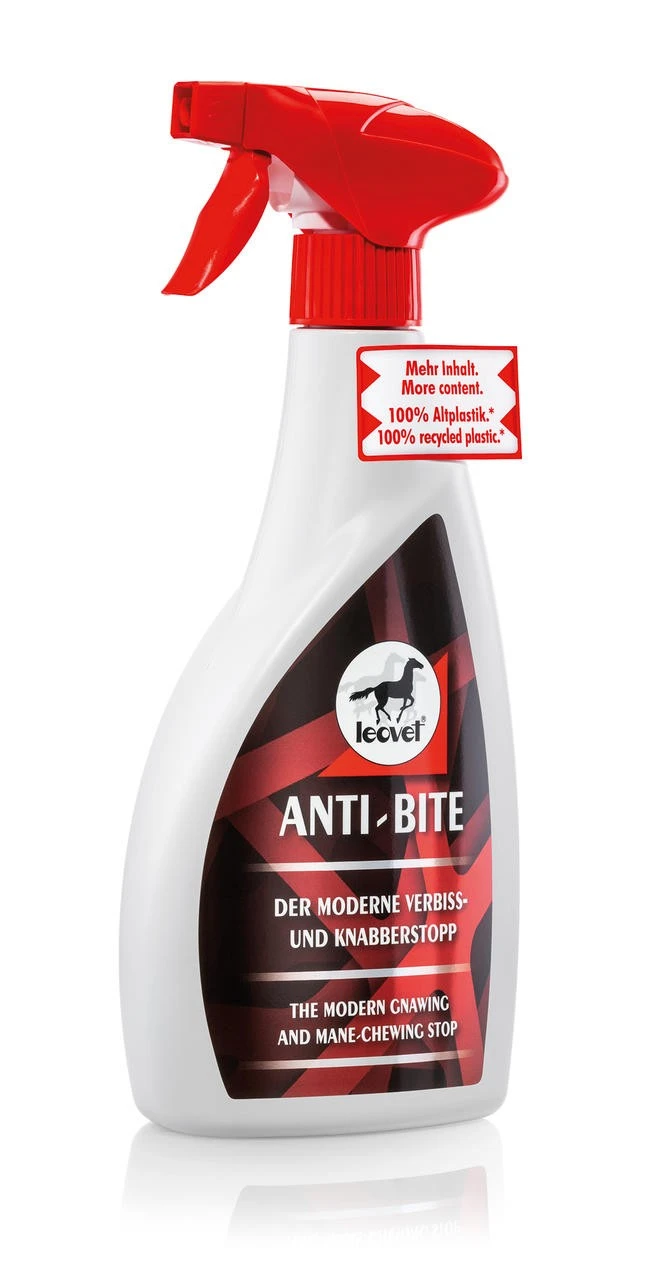 Der moderne Verbiss- und Knabberstopp Anti-Bite von LEOVET schĂĽtzt mit seinem wirkungsvollen, aber gesundheitlich völlig unbedenklichen Inhaltsstoff BitrexTM – dem bittersten Stoff der Welt – Holz, Metall, Kunststoff, Bandagen und alles Zubehör. Auch Mähne und Schweif werden zuverlässig vor dem Anknabbern geschĂĽtzt.