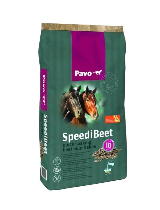 Pavo SpeediBeet ist ein Futtermittel mit hochwertigen Rohfasern, die eine gesunde Darmfunktion unterstützen können. In einem patentierten Fertigungsverfahren (Mikronisieren) werden die Flocken zu einer guten Nahrungsergänzung verarbeitet. Schon nach 10 Minuten Einweichzeit können die eingeweichten Flocken verfüttert werden.