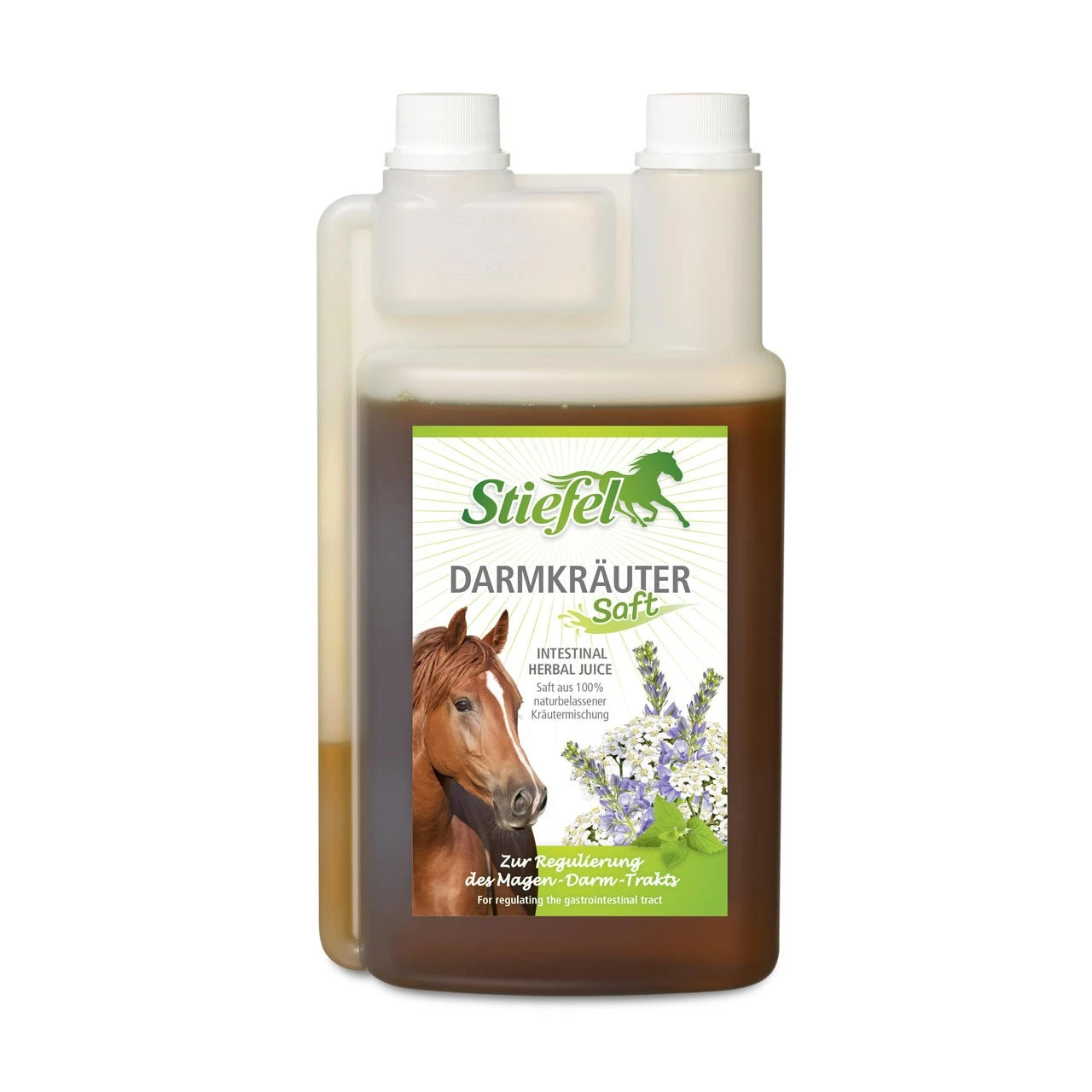 Stiefel Darmkräutersaft ist ein Saft aus einer speziell ausgewählten Kräutermischung ohne künstliche Aromastoffe zur Regulierung des gesamten Magen-Darm-Trakts. Bei Blähungen, Kotwasser und Durchfall sowie bei hoher Anfälligkeit für Koliken kann Stiefel Darmkräutersaft positiv unterstützen. Die verarbeiteten Kräuter können entspannend und krampflösend auf den Magen-Darm-Trakt wirken und sowohl Appetit als auch Verdauung anregen. Durch den in den Kräutern enthaltenen Gerbstoffanteil kann die Darmschleimhaut unterstützt und stabilisiert werden. Stiefel Darmkräutersaft kann vorbeugend und im akuten Stadium verabreicht werden. Zudem ermöglicht die flüssige Darreichungsform eine hohe Bioverfügbarkeit, sodass die Inhaltsstoffe direkt optimal vom Körper verwertet werden können, ohne vorher umgewandelt werden zu müssen.