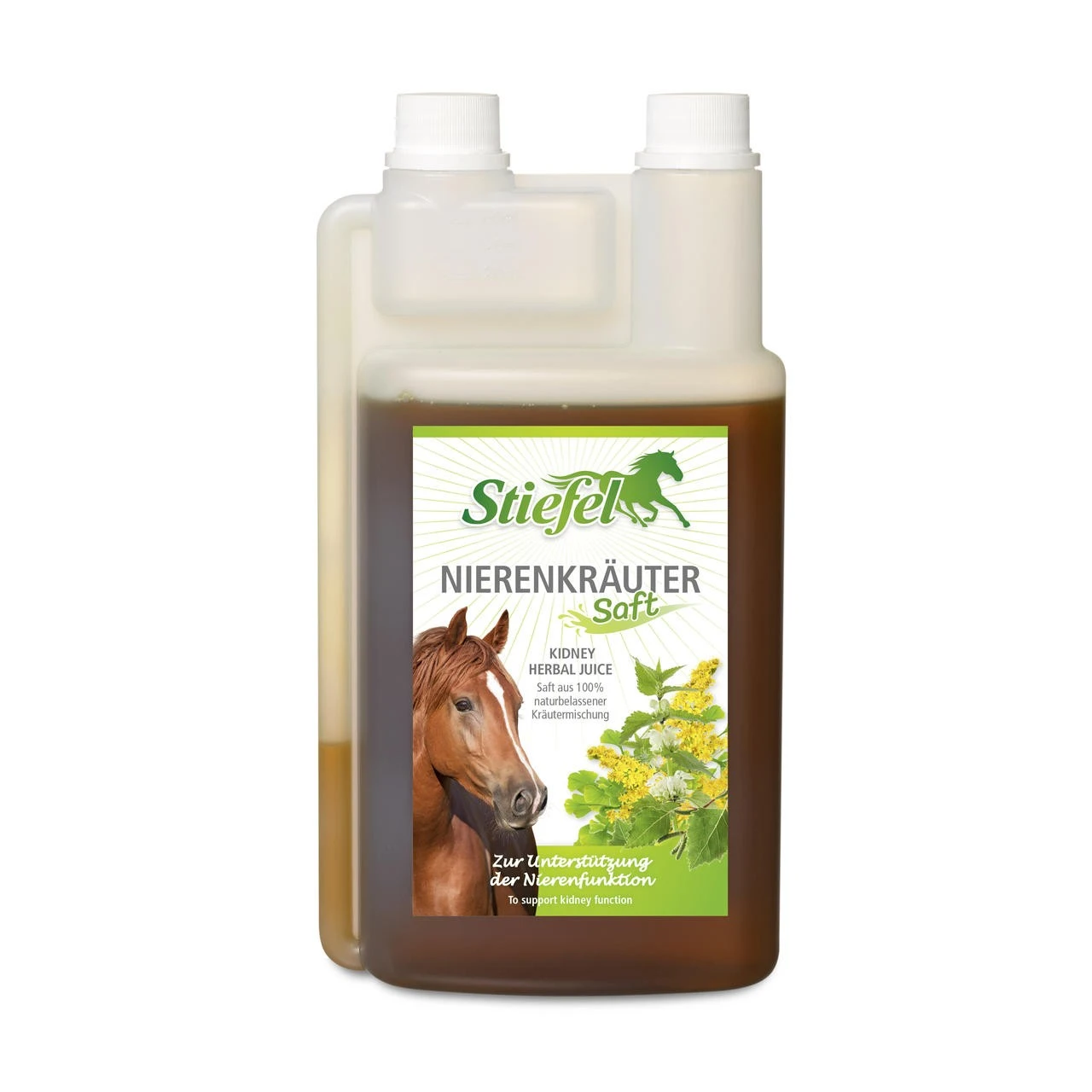 Stiefel Nierenkräutersaft ist ein Saft aus einer speziell ausgewählten Kräutermischung ohne künstliche Aromastoffe zur Unterstützung der Nierenfunktion. Die Ausscheidung kann positiv beeinflusst werden. Heutzutage haben viele Pferde mit Stoffwechselproblemen zu kämpfen. Das hat zur Folge, dass die Ausscheidungsorgane wie Leber und Niere oftmals überlastet sind und nicht mehr die nötige Leistung bringen können. Durch den Stiefel Nierenkräutersaft kann die Wasserausscheidung auf natürlichem Wege reguliert und gefördert werden. Zudem ermöglicht die flüssige Darreichungsform eine hohe Bioverfügbarkeit, sodass die Inhaltsstoffe direkt optimal vom Körper verwertet werden können, ohne vorher umgewandelt werden zu müssen.
