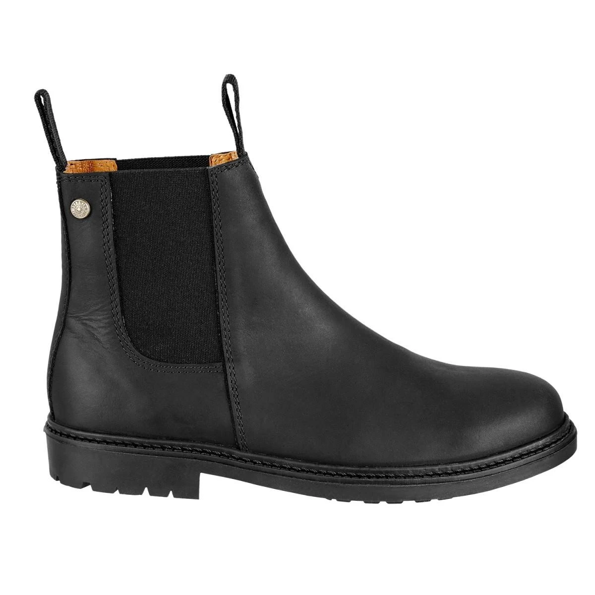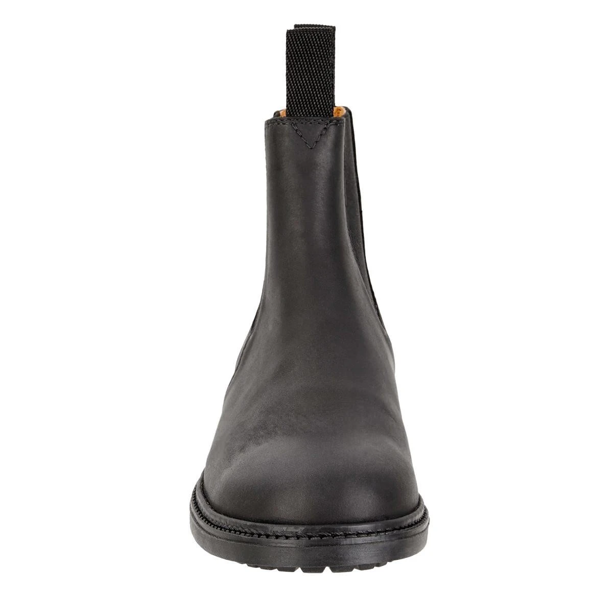 Vielseitig verwendbare Stiefelette im klassischen Chelsea Look. Die Stiefelette New Work wurde handgefertigt aus hochwertigem, wasserabweisendem Leder. Das feuchtigkeitsabsorbierende Echtleder im Innenschuh sorgt fĂŒr ein angenehmes GefĂŒhl im Schuh. Die robuste Gummisohle hĂ€lt auch mal einem lĂ€ngeren Spaziergang mit dem Hund oder Pferd stand.