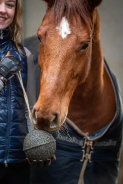 Gebrauchsanweisung: Hängen Sie UNIKA BALLS „Gastro“ in die Box und stellen Sie es dem Pferd zur VerfĂĽgung.