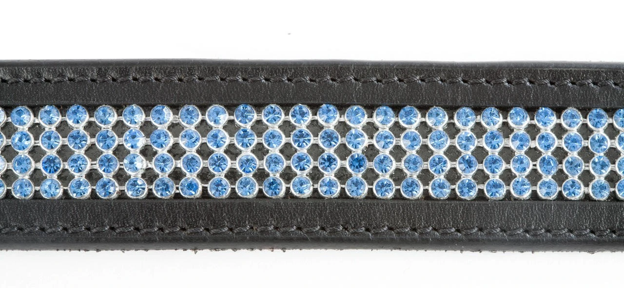 Edler Gürtel „Princess“ von USG aus hochwertigem schwarzen Leder und besetzt mit blauen Glitzersteinen – nicht nur auf der Reithose ein Hingucker.