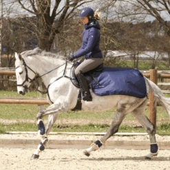 WĂ€rmende Nierendecke mit Sattelausschnitt. Doppelter Klettverschluss am Widerrist und Schweifkordel sorgen fĂŒr guten Sitz und einfaches An- und Ausziehen.
