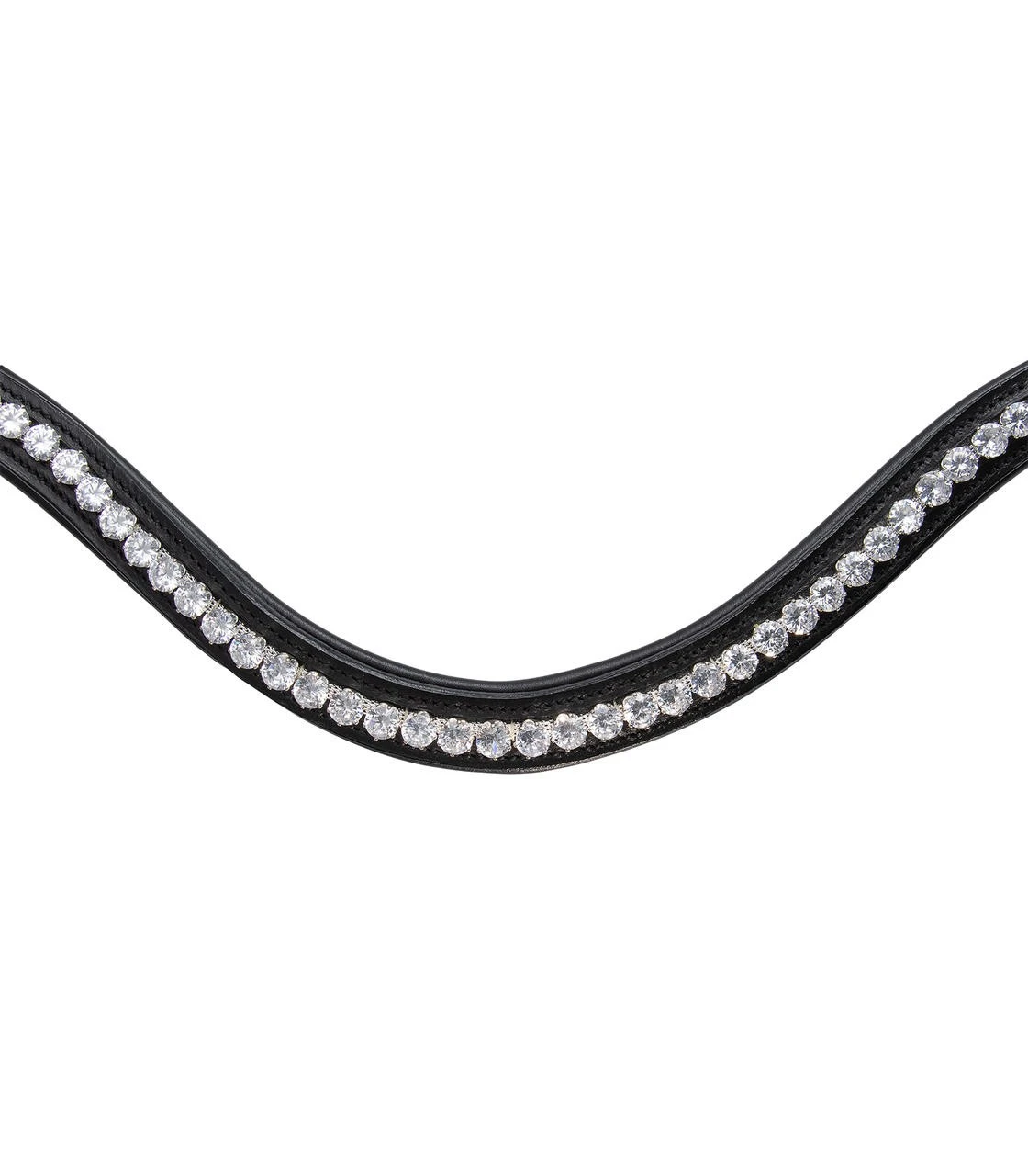 - geschwungenes Stirnband mit groĂźen, klaren Strasssteinen